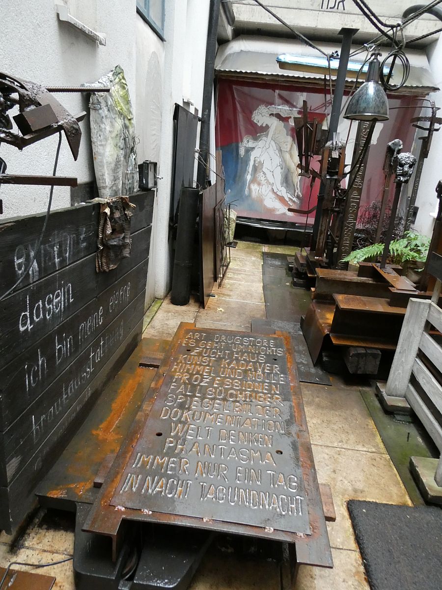 raus/rein molochen fragmentieren kontext/subordinariate und die suppe löffeln nieder mit dem stillstand, mehren gittereisen ausschindung mit deckensprüngen und lichtbogen zwischen durchsicht zusammengeflickter baumwollfetzen-schlosserhosen, dachdeckerschuhen unruhige eisenbeiszer […]codieren